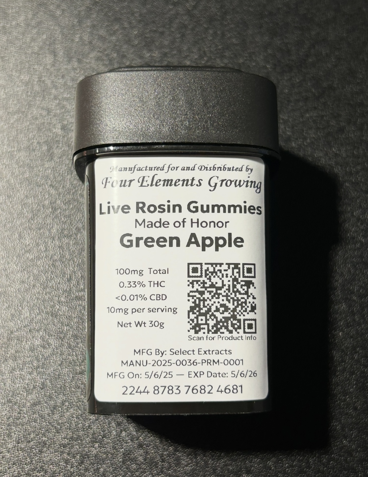 Four Elements x Couchlock- Green Apple (Made of Honor) Rosin Gummies 100mg