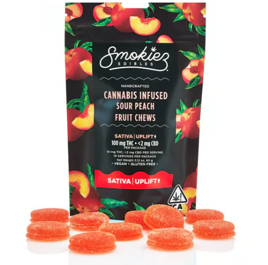 Smokiez Edibles Sour Peach Gummiez 100 mg is a great tasting edible that carries a sour peach flavor in the form of a gummy. This chewy substance is great for anyone who doesn’t like harsh effects of smoke or the deadly side-effects of pills. Perfect for alleviating stress pain and many other medical issues in a tasty edible.